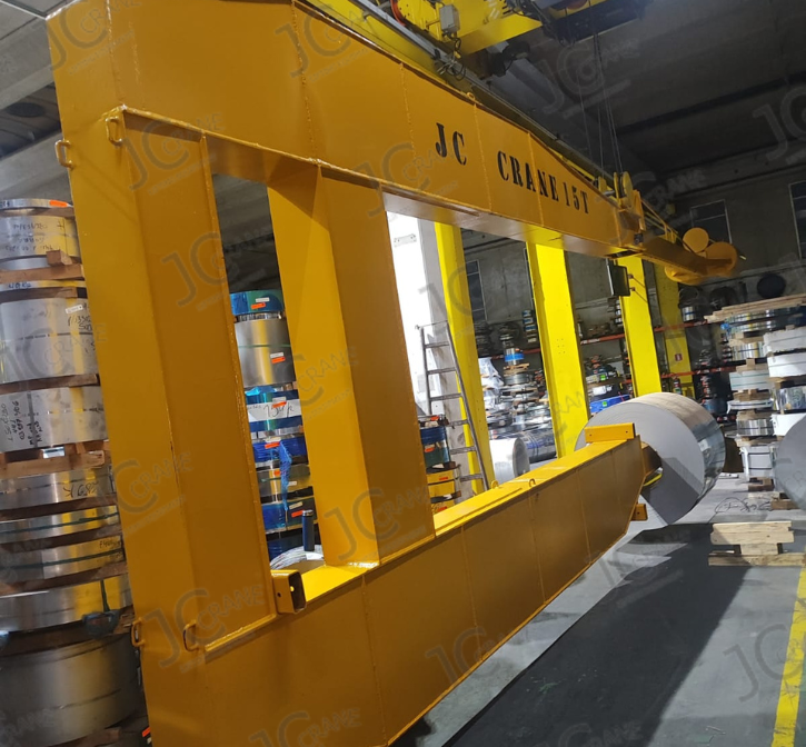 Eficiência e eficácia na movimentação e manuseio de bobinas em um ambiente industrial ou de armazenamento.
